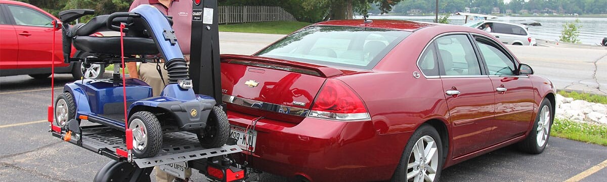 Transport mobility devices behind almost any vehicle using our exterior scooter/powerchair chariot lift.